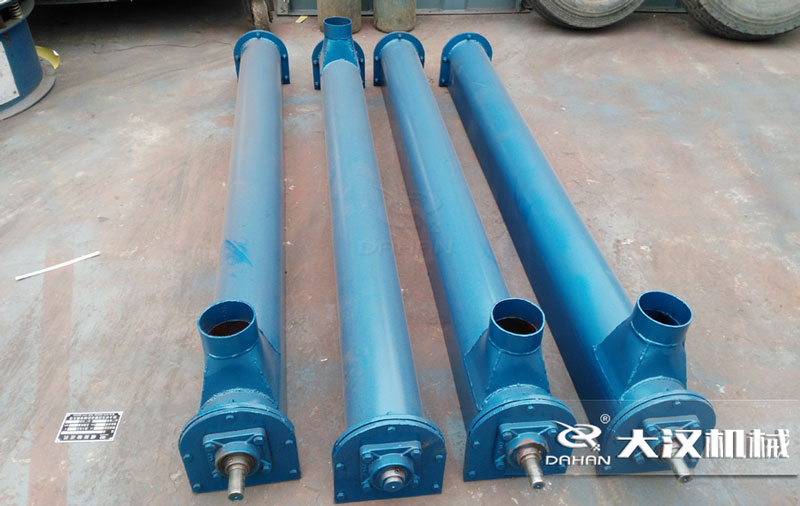 水平管式螺旋輸送機不宜輸送易變質的、粘性大的、易結塊的物料,因為這些物料在輸送時會粘結在螺旋上,并隨之旋轉而不向前移動或者在吊軸承處形成物料的積塞,而使螺旋機不能正常工作。管式螺旋輸送機螺旋直徑從200毫米到500毫米,共有五種規格,長度從4米到70米,每隔0.5米一檔,選型時符合標準公稱長度,特殊需要可在選配節中另行提出。